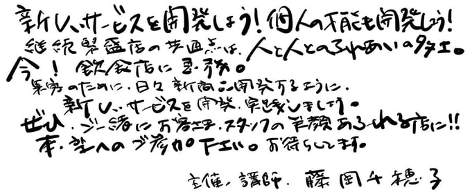 皆様からの、サービスロープレの反響が大きかったので、新しい仕事の創造のきっかけになる、個人成長が楽しくなる塾開催致します。