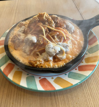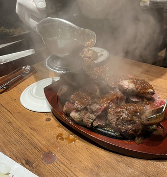 シズル演出とは熱せられた鉄板に商品を盛り付け、その上からソースをかけて「湯気や音」を演出するという方法です。