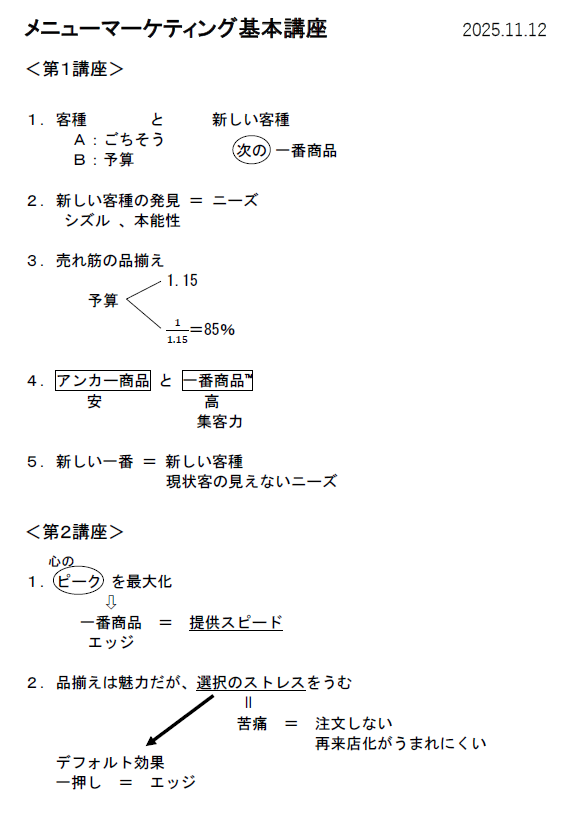 【メニューマーケティング基本講座】2025年 11月 12日(水)14:00~16:00 ※開催終了