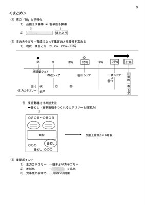 店舗の対応力(キッチン・スタッフ)を踏まえて、参加者の意見を出し合いながら、「メニュー提案レポート」の内容を説明し、その場で具体策を実践化レベルまで落とし込む会議です。